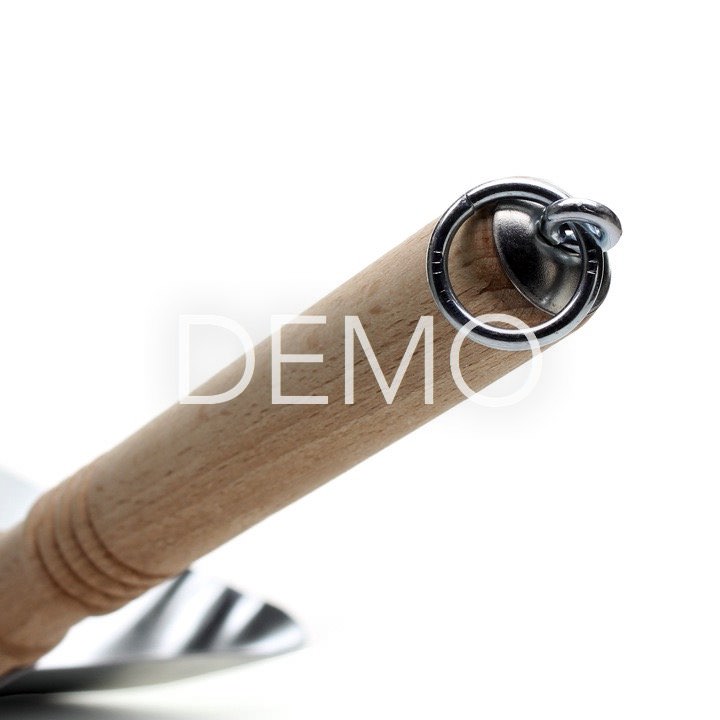 A seemingly simple dustpan with a few features to make life easier. The arch and length of the dustpan eases cleanup, the wood turned handle provides firm grip and the rubber liner along the edge of the scoop will retrieve small crumbs with a single swipe. A key ring at the top makes storage a cinch - hang it off a broom closet hook when not in use.
